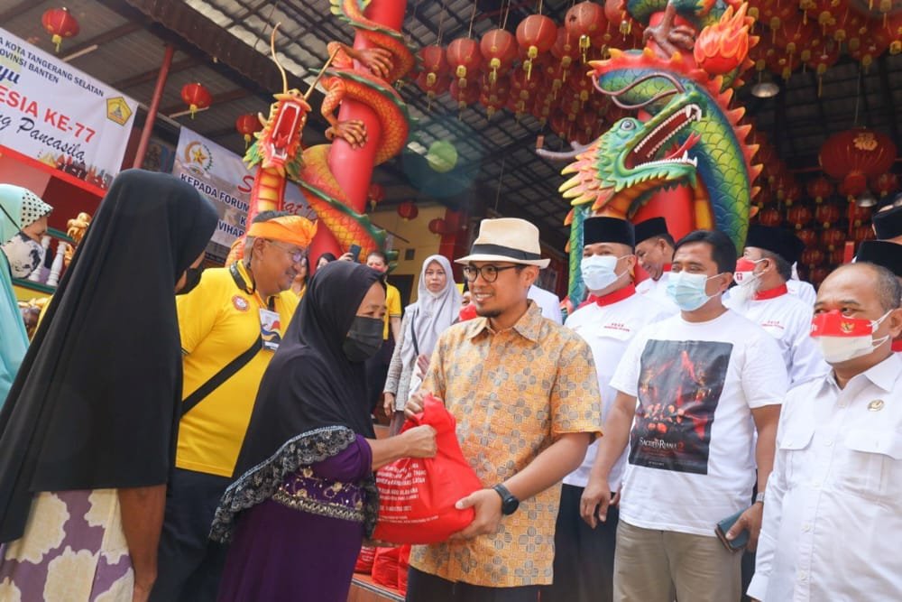 NASIONALXPOS.CO.ID, KOTA TANGSEL – Wakil Wali Kota Pilar Saga Ichsan menghadiri kegiatan bakti sosial yang diselenggarakan oleh Forum Kerukunan Umat Beragama (FKUB) Tangerang Selatan dan Vihara Kwan In Thang. Dalam kegiatan tersebut diberikan 1000 paket baksos kepada warga sekitar yang membutuhkan.