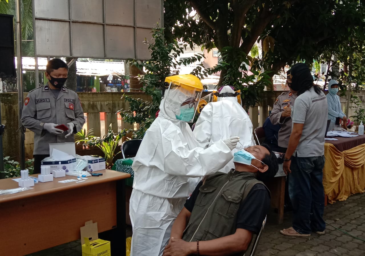 Di tempat tersebut, petugas melakukan test swab antigen gratis kepada para pedagang yang kemarin sempat pulang ke kampung halamannya di beberapa wilayah, dalam test swab antigen gratis kepada ratusan pedagang tersebut, dua pedagang dinyatakan terkompirmasi covid 19.