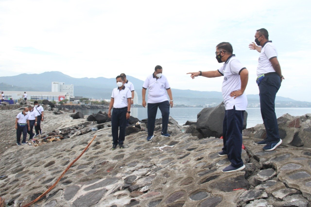 NASIONALXPOS.CO.ID, MANADO– Komandan Pangkalan Utama TNI AL (Danlantamal) VIII Brigadir Jenderal TNI (Mar) Donar Philip Rompas memimpin kegiatan pembersihan serta pembenahan di sekitar kawasan Megamas Manado, usai di terjang banjir rob. Jumat (22/01/2021).