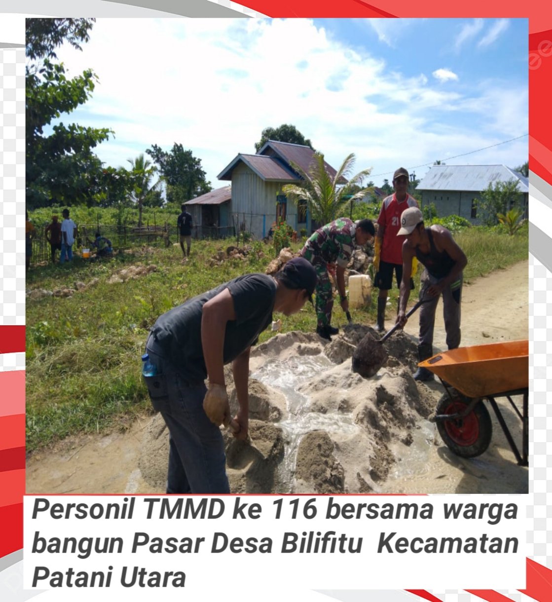 NASIONALXPOS.CO.ID,HALTENG – Sasaran pembangunan fisik TNI Manunggal Membangun Desa (TMMD) ke-116 Kodim 1512/Wed, salah satunya, pembangunan pasar Desa Blifitu Kecamatan Patani Utara.
