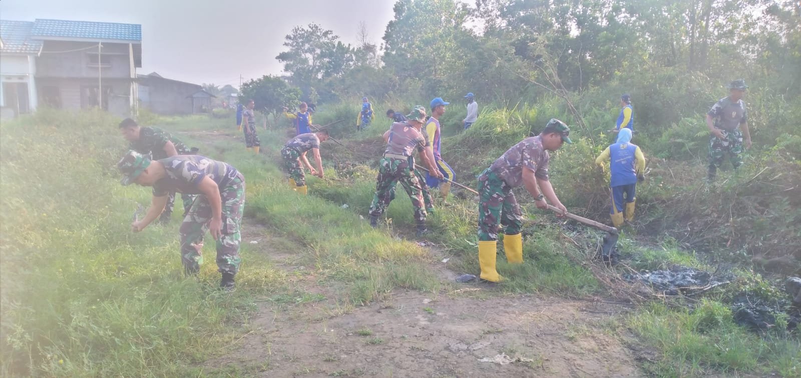 NASIONALXPOS.CO.ID, PALEMBANG – 20 orang Anggota Koramil 418-07/Sukarami, ikut melaksanakan kegiatan Gotong Royong Minggu Bersih Tingkat Kota Palembang di wilayah Kecamatan Sukarami, Minggu (11/6/2023).