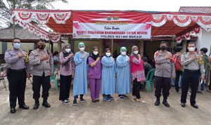 ” Dengan mengambil tema giat operasi kemanusiaan bhakti kesehatan bhayangkara untuk negeri, hari ini sebanyak 230 warga desa cilangkara di lakukan vaksinasi” tutur AKP Somantri.