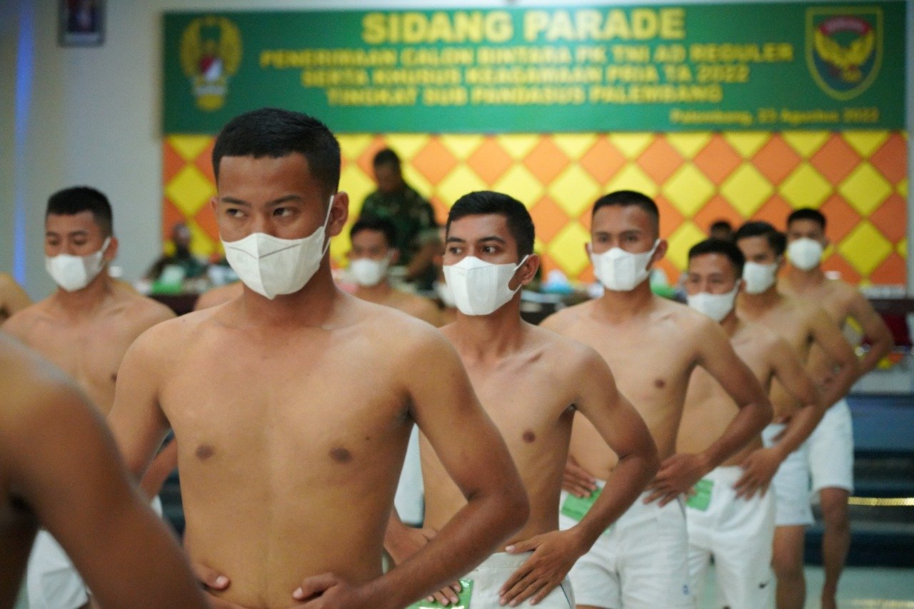 NASIONALXPOS.CO.ID, PALEMBANG – Kepala Staf Kodam (Kasdam) II/Sriwijaya Brigjen TNI Izak Pangemanan, memimpin Sidang Parade Pemilihan Calon Bintara (Caba) Prajurit Karier (PK) TNI AD Reguler dan Calon Bintara (Caba) Khusus Keagamaan Pria TA 2022, di Aula Vijaya Kusuma Ajendam II/Swj Jalan Urip Sumoharjo Kelurahan 2 Ilir Kecamatan Ilir Timur II Sekojo Palembang, Selasa (23/8/2022).