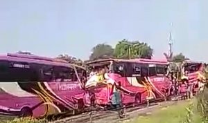 “Benar telah terjadi lakalantas pada pukul 08.30 wib melibatkan 4 kendaraan bus P.O Komara rombongan jamaah yang akan ziarah, 4 bus di KM 69 arah ke merak kecelakaan beruntun” ucap Wiratno.