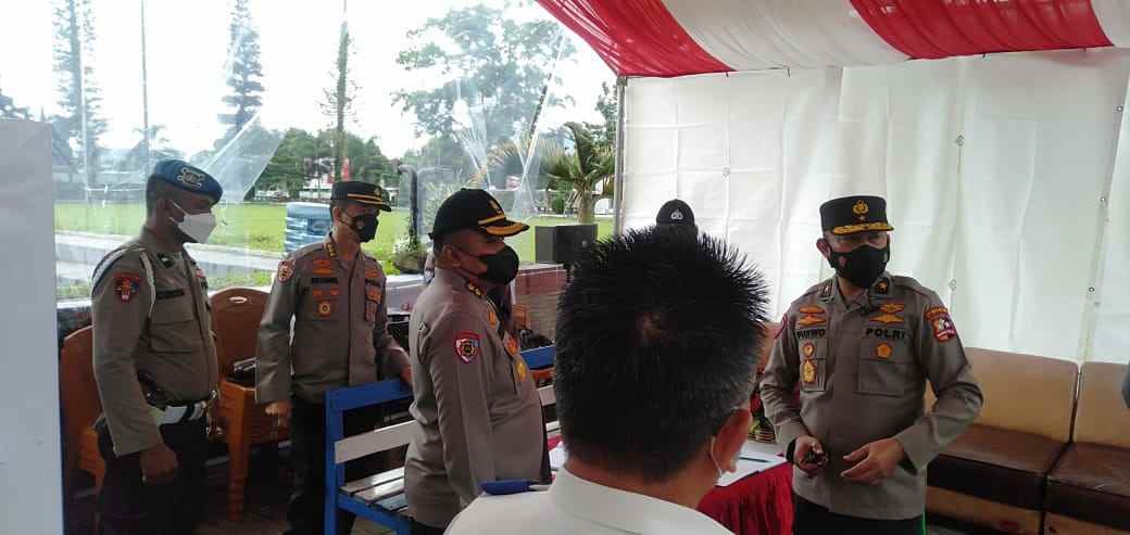 NASIONALXPOS.CO.ID, MINAHASA– Tim pengawasan Operasi Lilin 2021 Mabes Polri, yang dipimpin Brigjen Pol Purwoleleno, yang didampingi Kombes Pol Andi Syahriful Taufik dan AKBP Juniadi Nur, SH, SIK melanjutkan pengecekan ke Pos Pam Terpadu Lapangan God Bless, Tondano, Kamis (30/12/3021), sekira pukul 10:30 Wita.