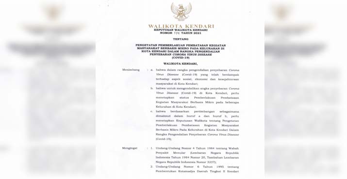 Dalam SK itu disebutkan ada 44 kelurahan dari 11 kecamatan di Kendari yang masuk dalam daftar PPKM mikro.