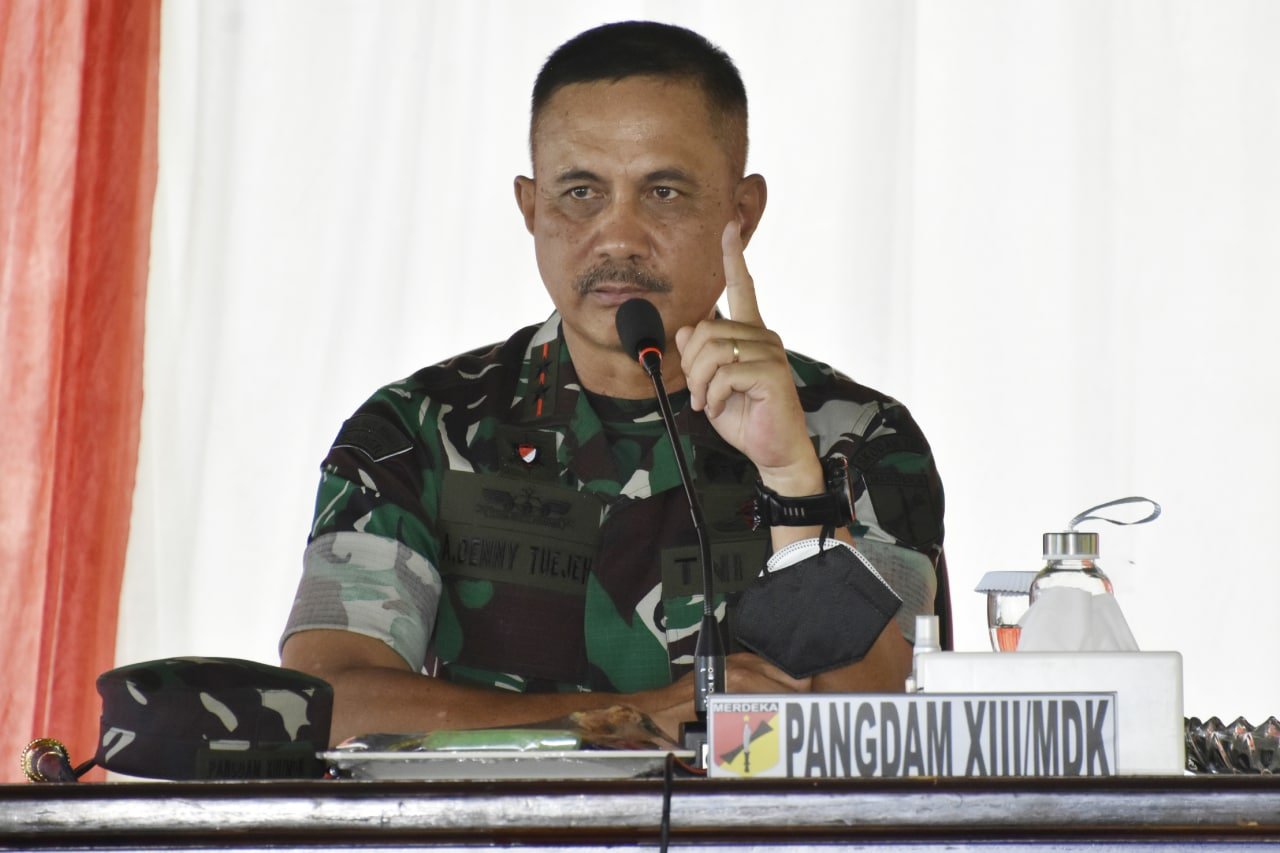 NASIONALXPOS.CO.ID,MANADO,-Kepadamu diberikan amanah ini, kepadamu juga diberikan tugas yang mulia ini, tidak sembarang orang dapat diberikan tugas itu, demikian yang disampaikan Pangdam XIII/Merdeka Mayjen TNI Alfret Denny Tuejeh saat memberikan pengarahan kepada 450 Prajurit Yonif Raider 712/Wiratama dalam pembukaan latihan pratugas di wilayah Kodam XVII/Cen yang bertempat di Mako Yonif Raider 712/WT, Selasa (18/10/2022).