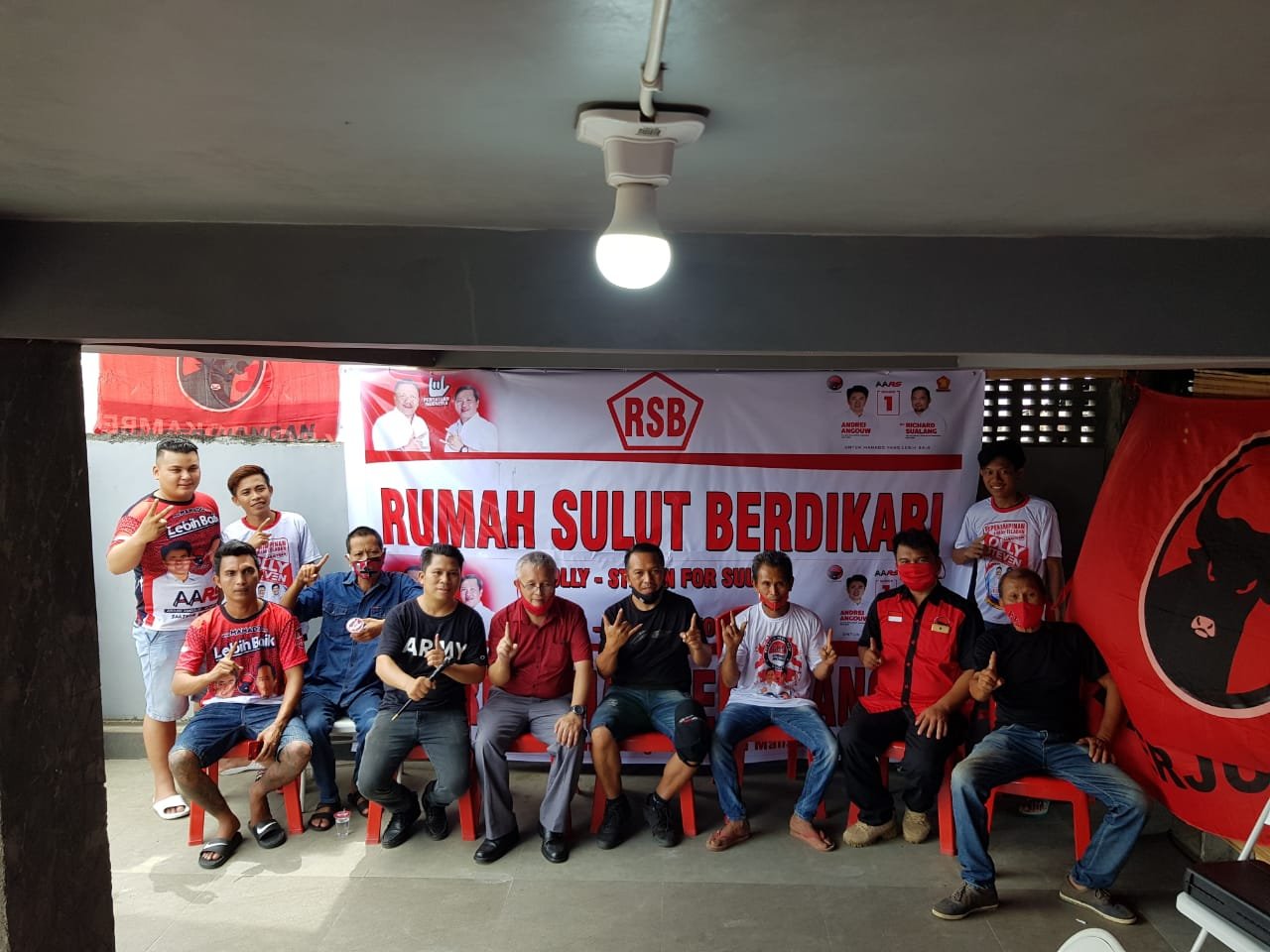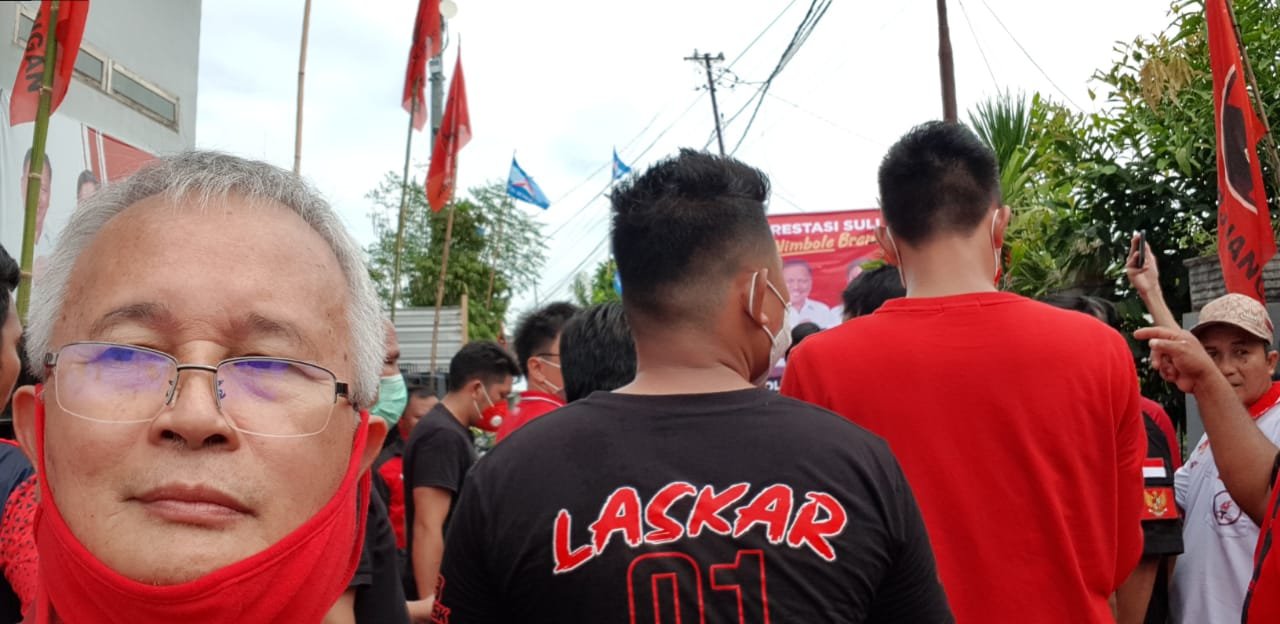 Sekretaris Rumah Sulut Berdikari (RSB) Victor Malonda Menyambut Calon Walikota Manado Andrei Angouw dengan Optimis yang dikawal para Relawan Banteng Untuk AARS nomor urut 1 datang untuk memotivasi visi dan misi Paslon AARS di Rumah Juang Rumah sulut berdikari (RSB).