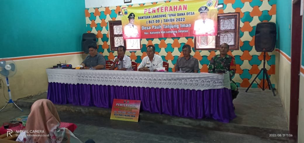 Pembagian BLT dihadiri langsung Maharuddin Kades Pauh Tanjung Iman, Sahril Abidin ketua BPD desa Pauh Tanjung Iman, Sertu Hadi Winoto Babinsa, Andri Ansyah kasi pertanahan Mewakili Zaidan SE Camat Kalianda, Ridwan Kusuma PDP serta masyarakat dan seluruh aparatur desa pauh tanjung iman.