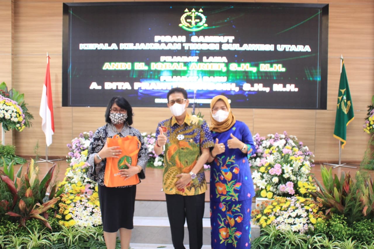 NASIONALXPOS.CO.ID, MANADO– Acara pisah sambut Kepala Kejaksaan Tinggi Sulawesi Utara dari pejabat lama Andi Muh Iqbal Arief, SH.MH kepada pejabat yang baru Albina Dita Prawitaningsih, SH. MH, dan acara pelepasan untuk Iwan Catur Karyawan, SH. MH yang dipromosi menjadi Kepala Kejaksaan Negeri Barito Utara, bertempat di aula Sam Ratulangi Kejaksaan Tinggi Sulawesi Utara, Jumat (18/12/2020).