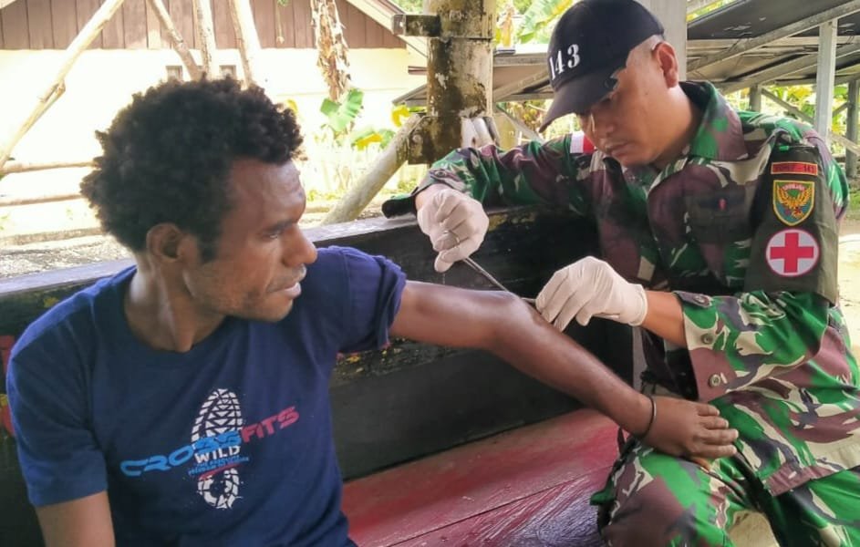 Sementara itu, Elianus warga yang mengalami luka mengungkapkan rasa terimakasihnya kepada anggota Satgas Yonif 143/TWEJ Pos Ubrub yang telah memberikan perawatan terhadap luka yang dialaminya.