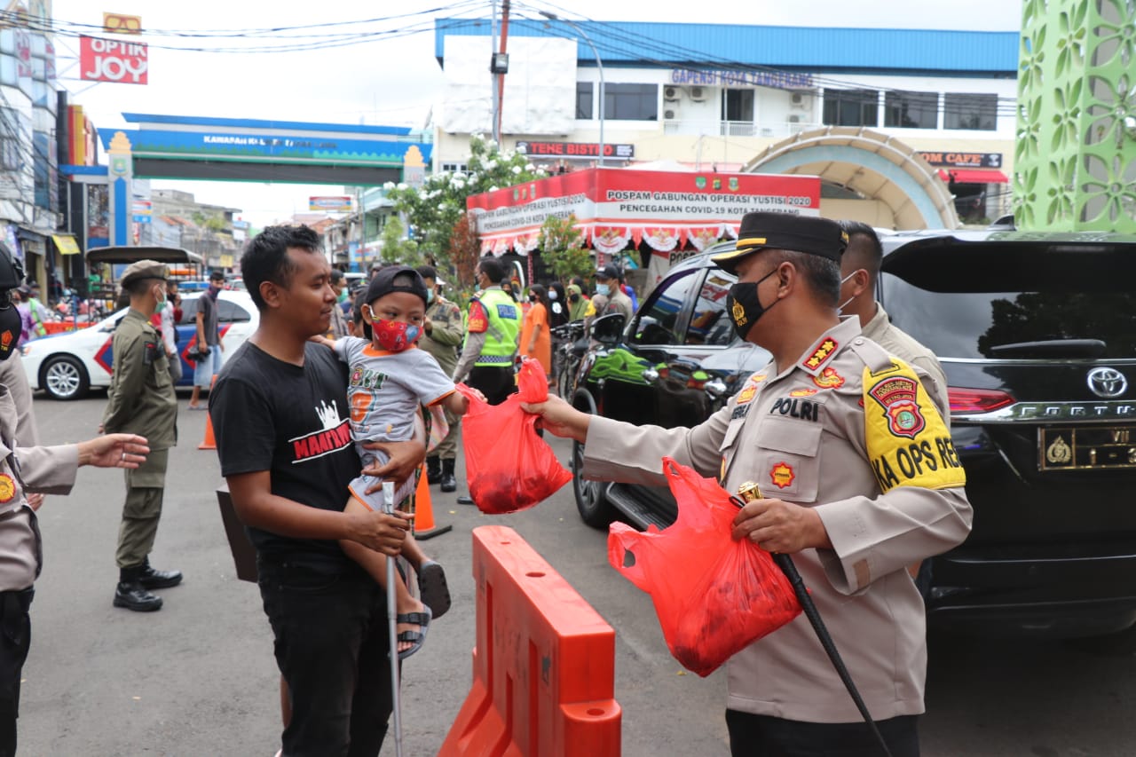 Namun lain yang dilakukan Kapolres Metro Tangerang Kota, Kombes Pol Sugeng Hariyanto dengan berkeliling mendatangi masyarakat sambil membawa bungkusan berisi sekira berisi sekilo daging dan sembako untuk dibagikan ke masyarakat di Kota Tangerang, Senin,(31/12/2020).