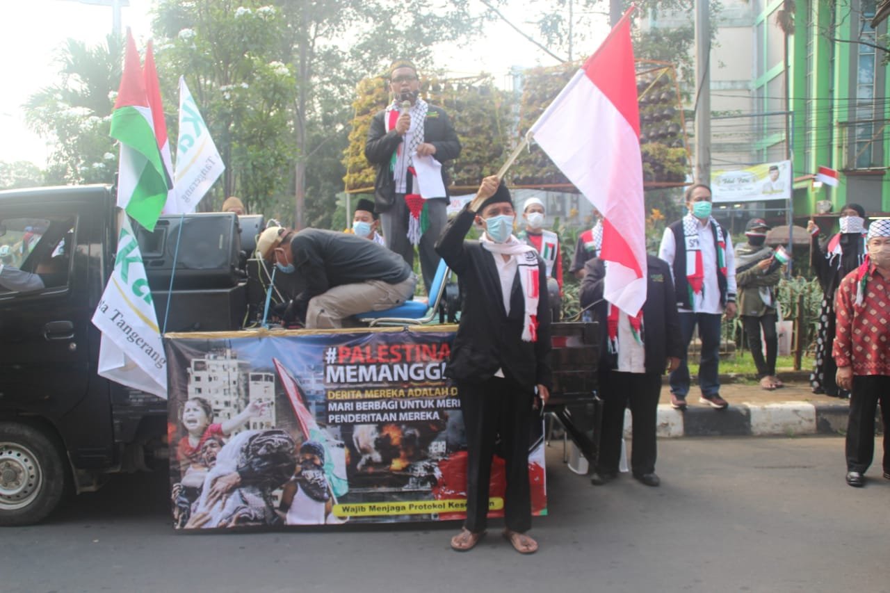 Aksi dukungan tersebut diselenggarakan oleh IKADI (Ikatan Dai Indonesia) Kota Tangerang) bersama Sahabat Palestina Memanggil (SPM), yang rencananya dilaksanakan hari Kamis pagi pukul 08:00-12:00 wib siang, namun aksi ini dapat selesai lebih awal, yakni pada pukul 10.15 Wib karena di khawatirkan mengganggu pengguna jalan.
