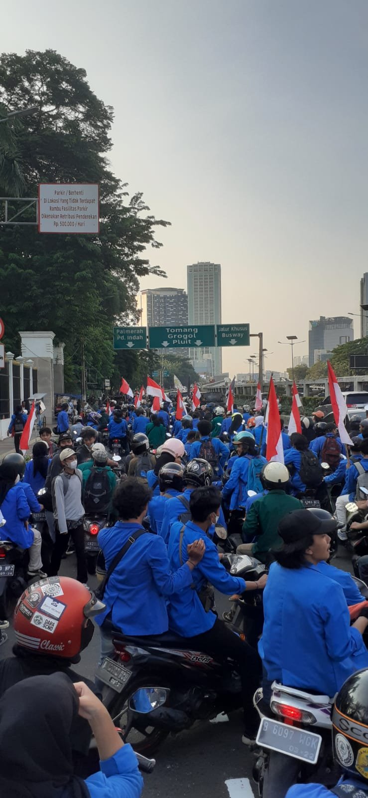 Pantauan di lokasi, ratusan mahasiswa tersebut bergerak dari Kota Tangerang Selatan (Tangsel) menuju Jakarta untuk menyampaikan tuntutannya didepan Gedung DPR/MPR RI.