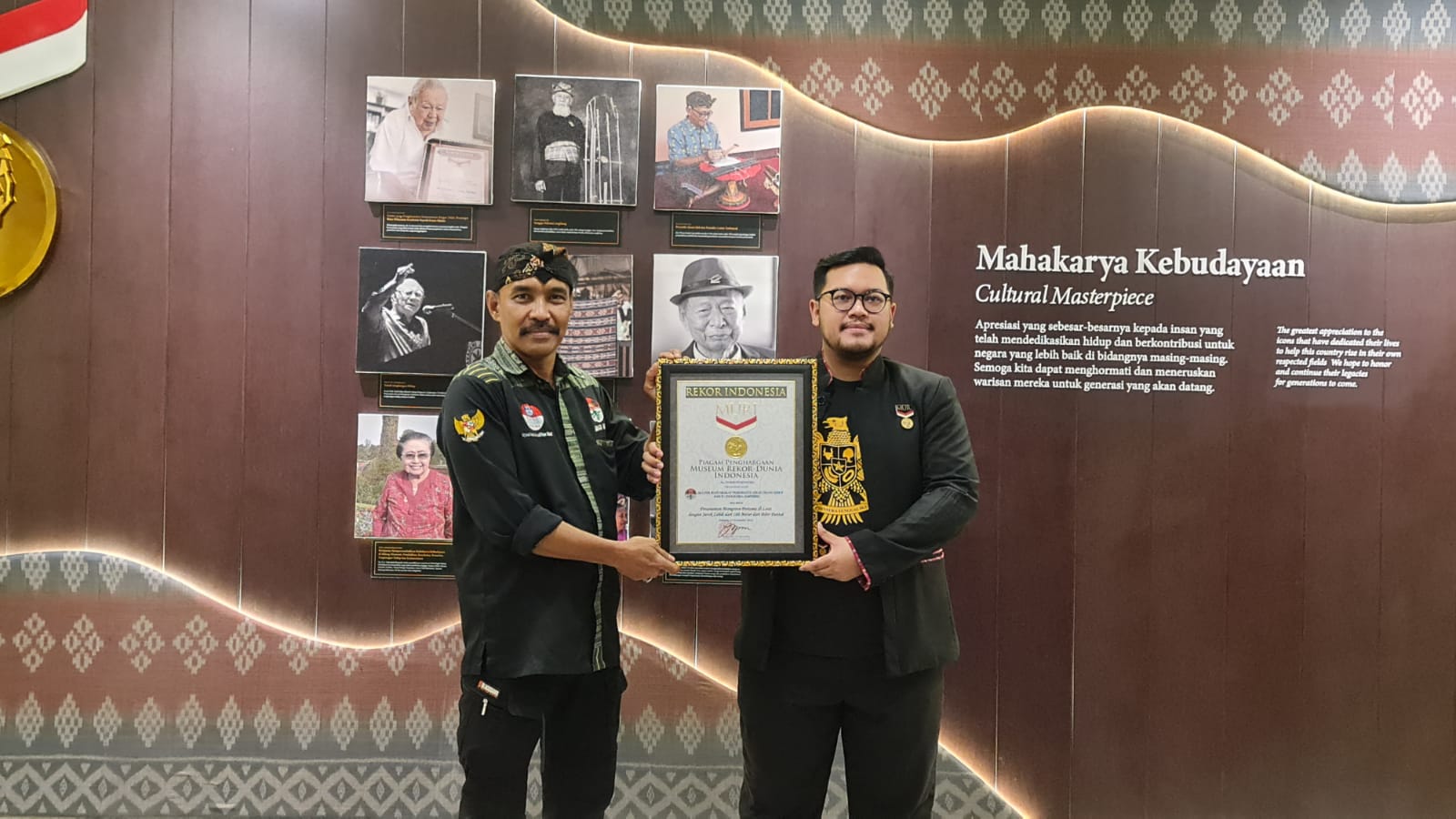 Penganugerahan Piagam MURI oleh Andre Purwandodo selaku Customer Relation Manager kepada Ketua Umum Aliansi Masyarakat pemerhati Lingkungan Hidup & B3 Indonesia (AMPHIBI) Agus Salim Tanjung, So,Si pada Selasa (14/12/21).