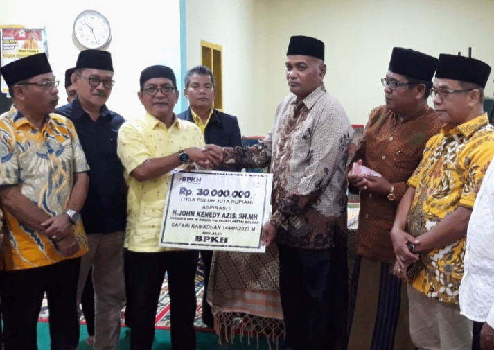 Kemudian Jhon Kenedy azis menyerahkan Bantuan sebanyak Rp 30 juta secara simbolis kepada pengurus surau kampuang, tentu dengan harapan bantuan tersebut dapat digunakan dengan sebaik-baiknya.