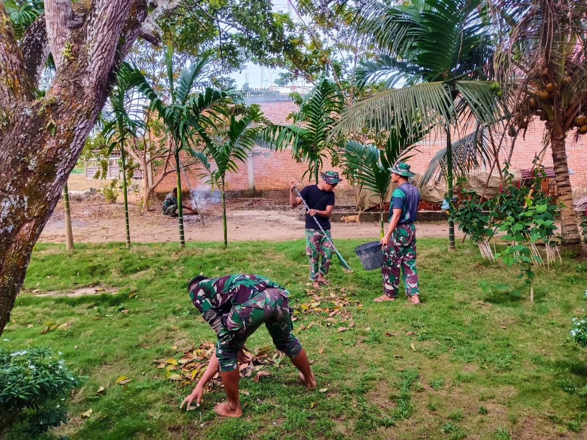Anggota Satgas TMMD Ternyata Juga Rajin Bantu Orang Tua Asuh Bersihkan Pekarangan Rumah