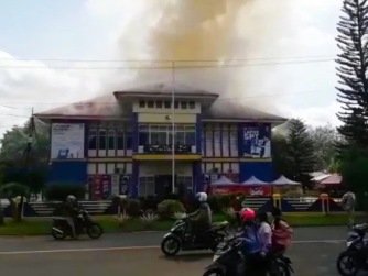 Kebakaran di lantai dua gedung kantor pajak yang berisi sejumlah berkas dan barang-barang elektronik yang ikut terbakar
