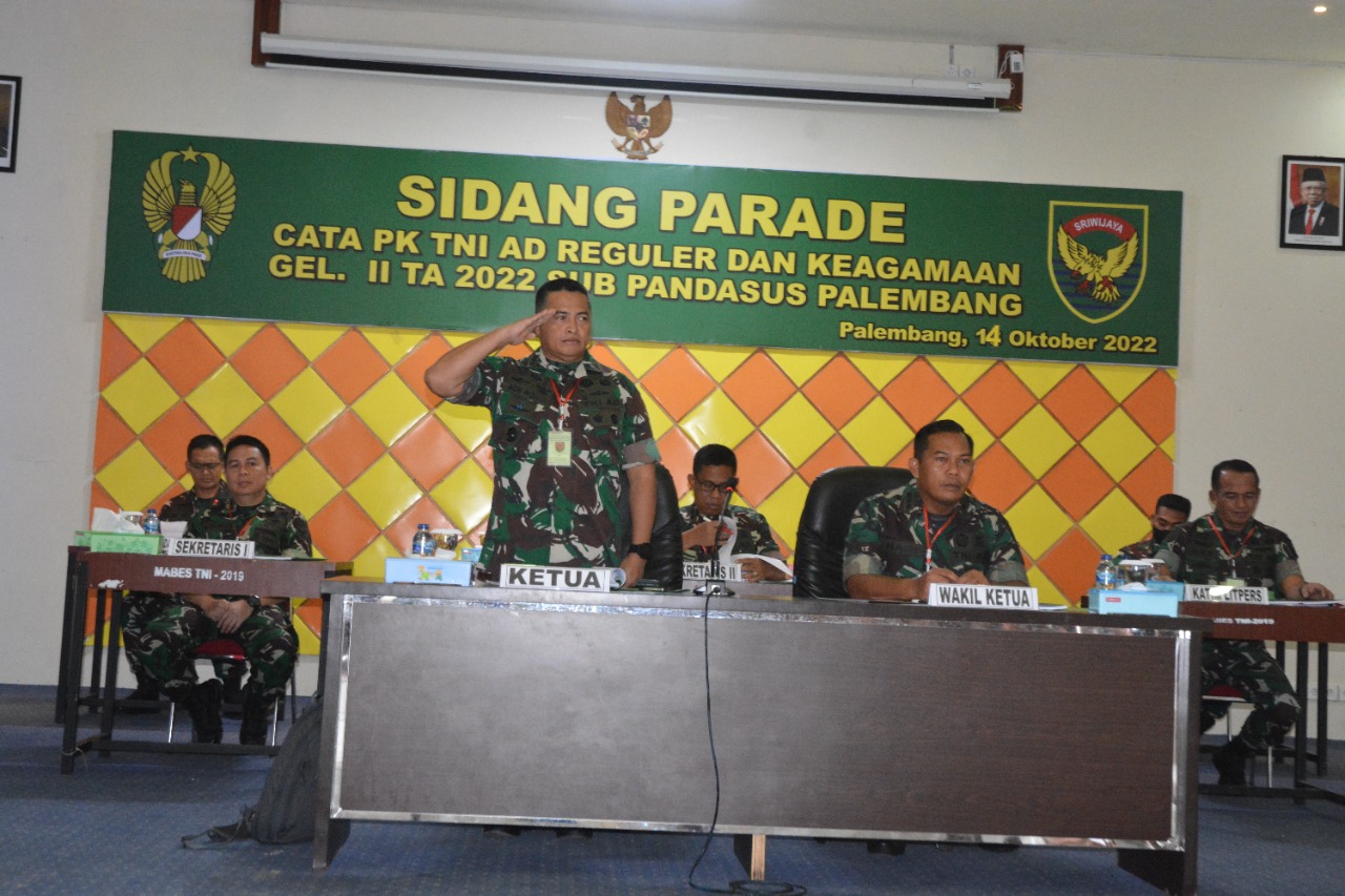 Sidang ini, diikuti 319 peserta Calon Tamtama PK TNI AD Gelombang II TA. 2022 Reguler dan Keagamaan Tingkat Sub Panitia Daerah Khusus (Pandasus) Palembang. Dengan Animo pendaftaran Reguler sebanyak 3.699 peserta dan Keagamaan sebanyak 115 peserta.