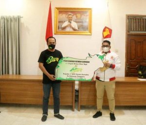 Ketua DPD Gerindra Sultra, Andi Ady Aksar menyerahkan langsung secara simbolis sapi kurban kepada masing-masing DPC Gerindra se-Sultra bertempat di Kantor DPD Partai Gerindra Sultra, Senin 12 Juli 2021.