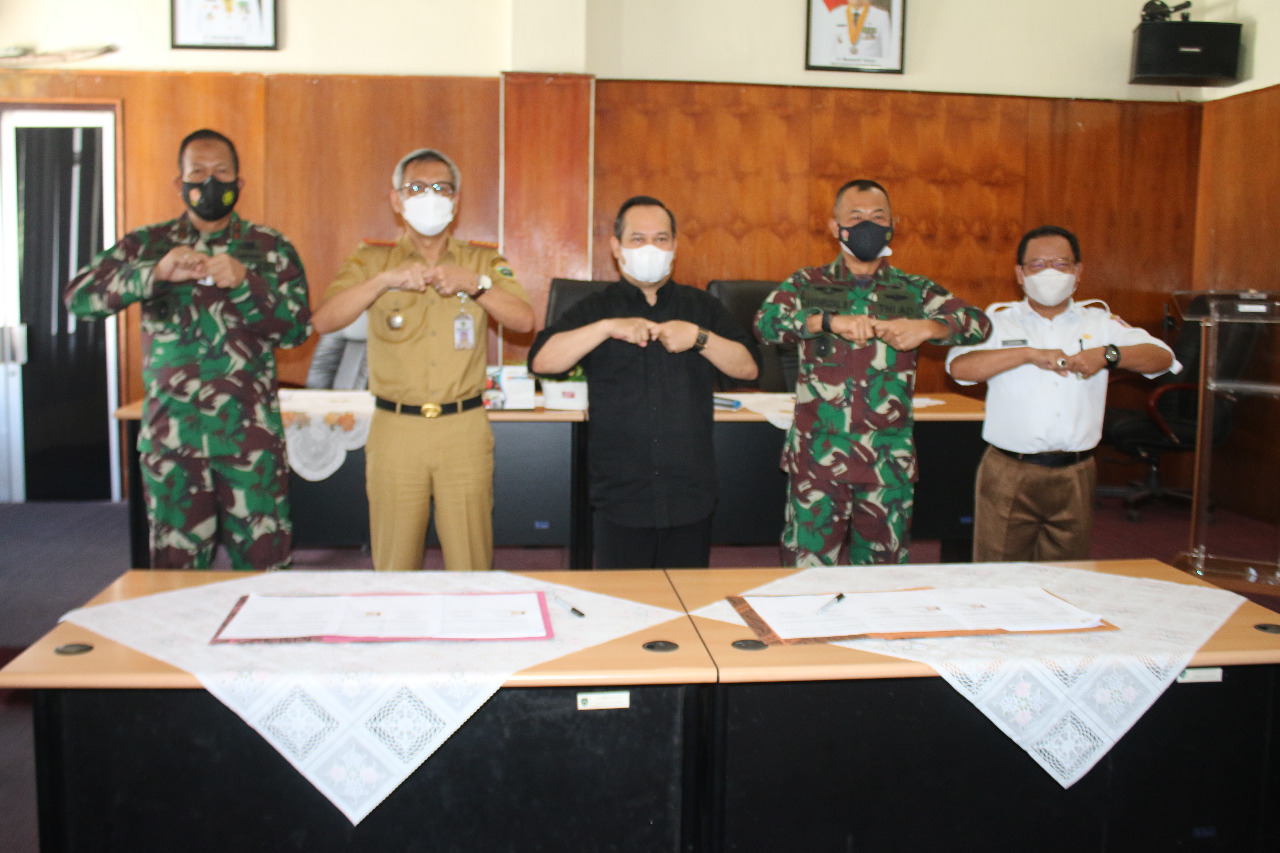 NASIONALXPOS.CO.ID, PALEMBANG – Aster Kasdam II/Sriwijaya Kolonel Arh Fithrizal Setiawan SSos MSc, menghadiri acara penandatanganan perjanjian kerjasama pekerjaan kontruksi optimasi lahan rawa dan olah tanah kegiatan Intensifikasi lahan sawah Kabupaten Banyuasin dan OKU Timur TA 2021, di Ruang Rapat Dinas Petanian Provinsi Sumsel, Senin (26/7/2021).