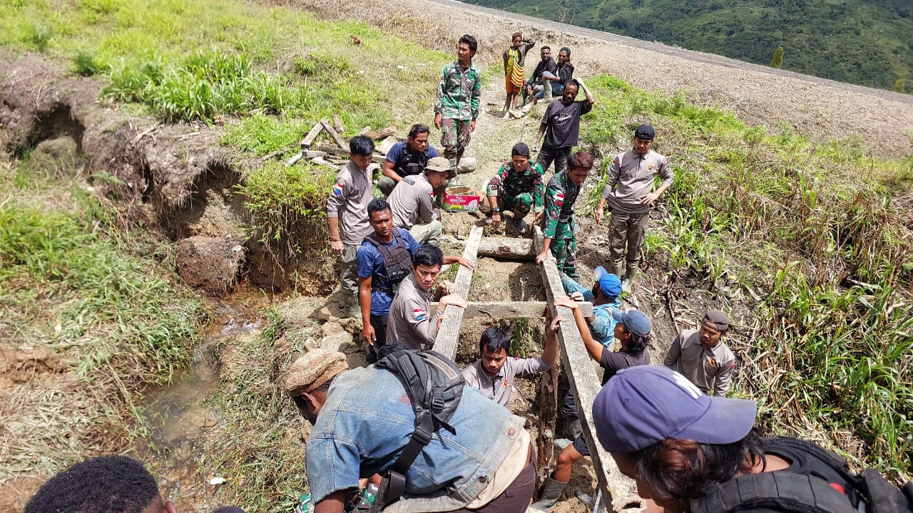 “Saya melihat ada jembatan rusak yang menghubungkan antara Kampung Mangoldoki dan Kampung Sopamikma, maka saya berinisiatif ajak masyarakat membangun kembali jembatan yang rusak tersebut,” terang Danpos Kiwirok.