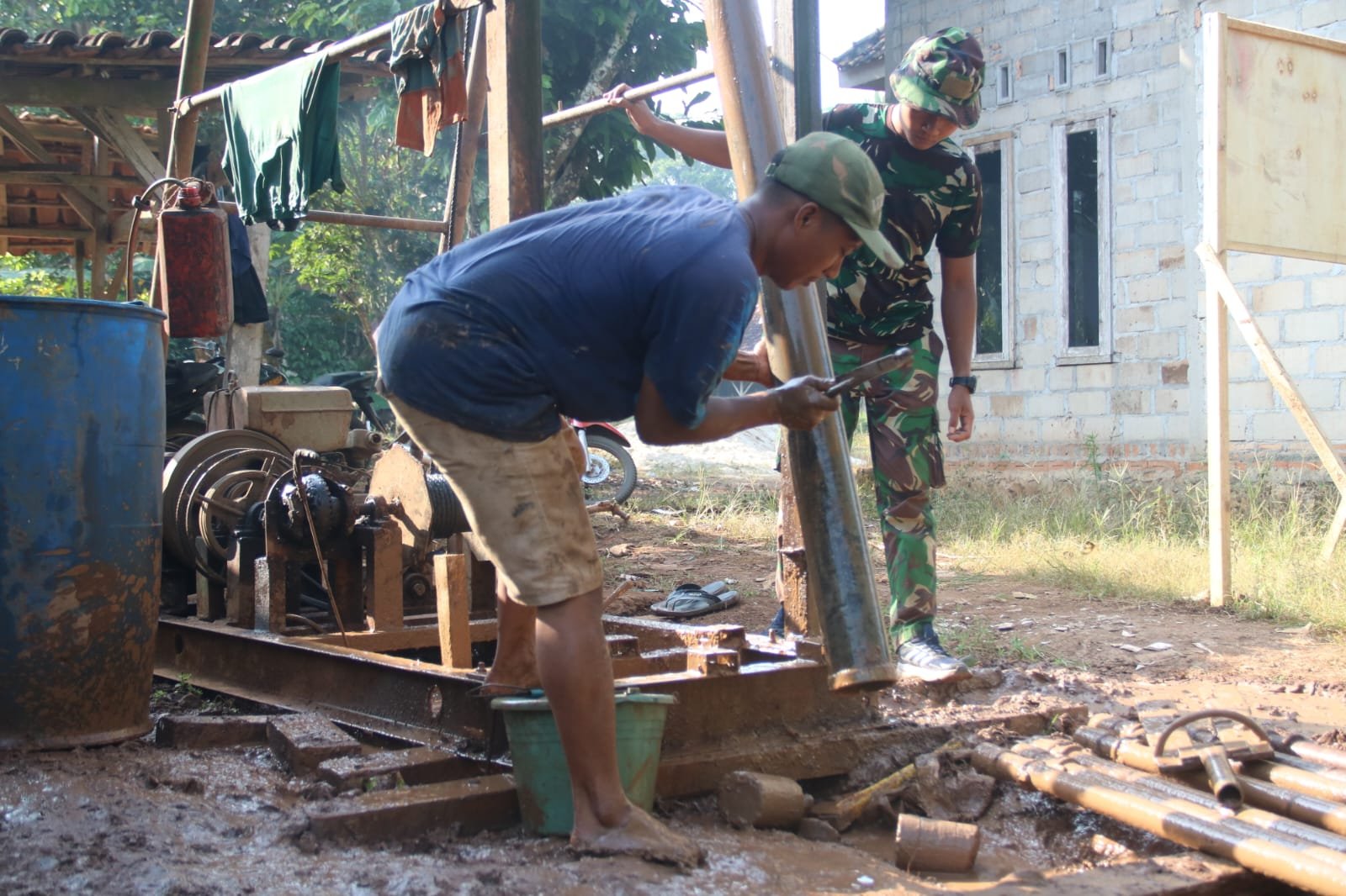 NASIONALXPOS.CO.ID, LAMTIM – Salah satu pembangunan sasaran fisik TNI Manunggal Membangun Desa (TMMD) Reguler ke -117 Kodim 0429/Lamtim yang terus dikebut pengerjaannya, yakni pembangunan sumur bor, di Dusun 3, Desa Sumber Marga, Kecamatan Way Jepara, Kabupaten Lampung Timur, Sabtu (22/7/2023).