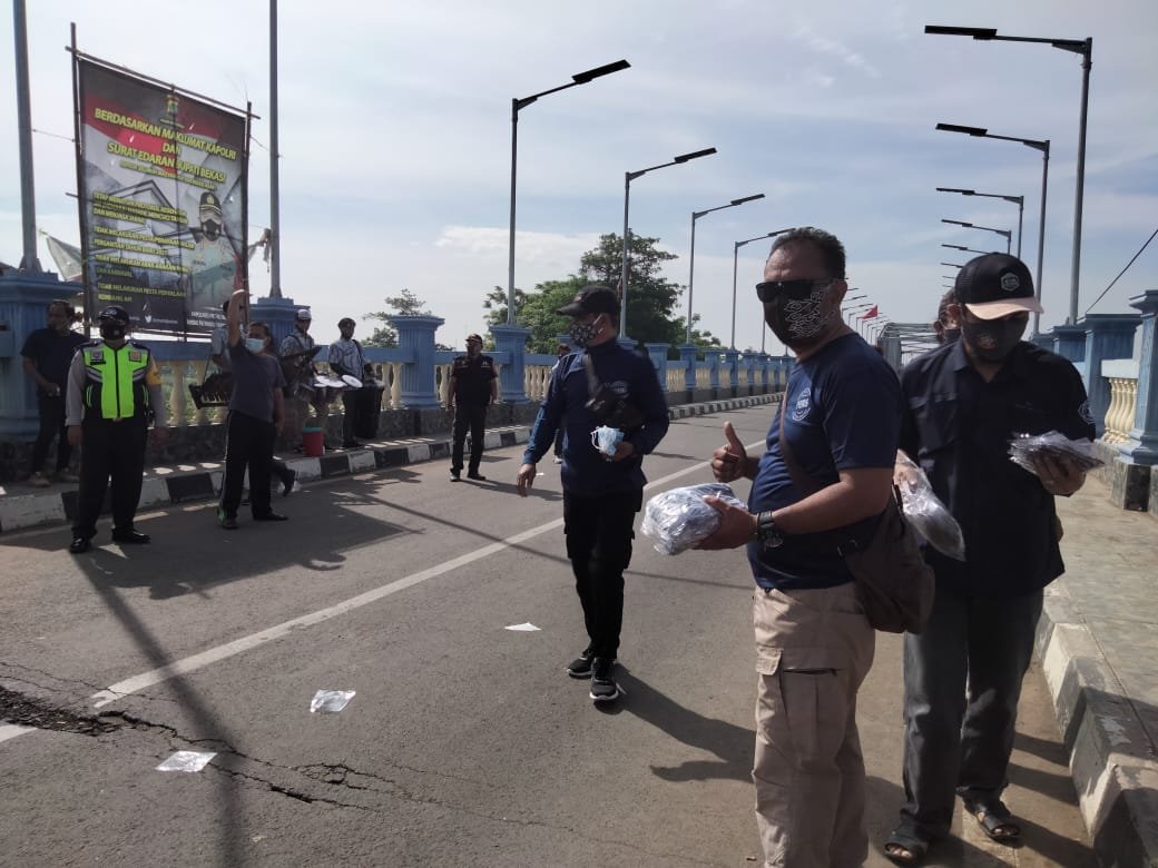 NASIONALXPOS.CO.ID, BEKASI – Dalam rangka meningkatkan Peran Pers Media membantu pemerintah, dalam percepatan penanggulangan Covid-19, Media Info Pebayuran Bagikan 2021 Masker, Minggu (03/01/2021) Pembagian masker yang di lakukan di Jembatan Merdeka, perbatasan Karawang- Bekasi, tepatnya di Desa Sumbersari, Kecamatan Pebayuran, Kabupaten Bekasi, Jawa Barat, dalam upaya meningkatkan kesadaran masyarakat dalam penerapan protokol kesehatan di setiap rutinitas, agar terhindar dari Virus Corona, dan memutus mata rantai penyebaran Covid-19.