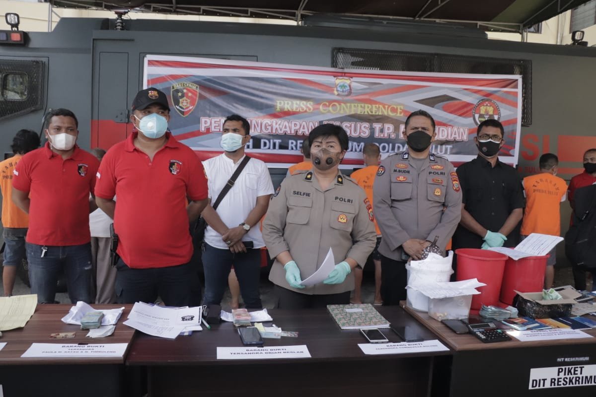 Pengungkapan kasus ini dibeber dalam sebuah press conference di halaman Ditreskrimum Polda Sulut, dipimpin oleh Kasubdit III Jatanras Ditreskrimum Polda Sulut AKBP Benny Ansiga didampingi Kompol Selfie Torondek dari Bidang Humas Polda Sulut, Kamis (14/1/2021).