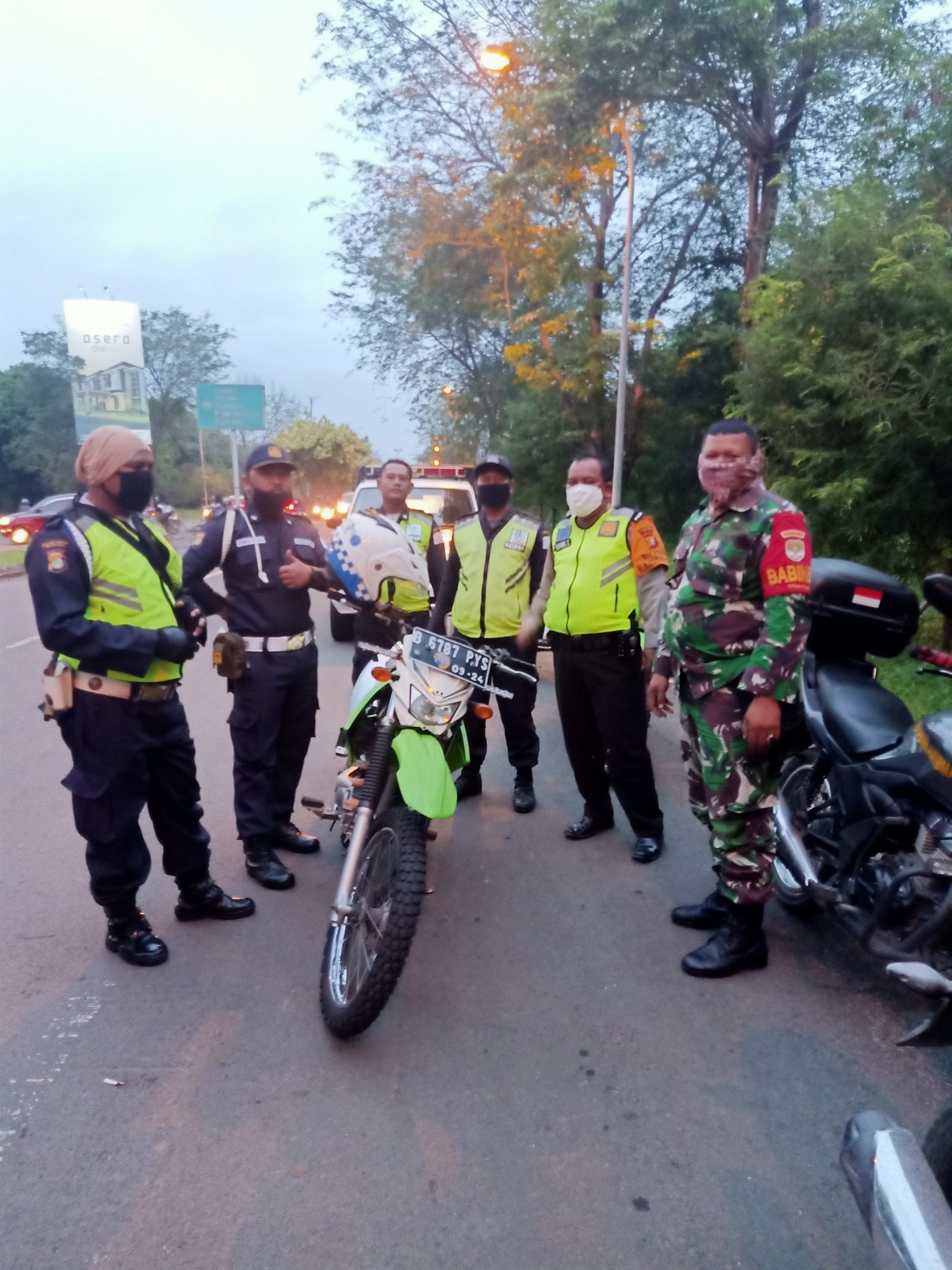 Koramil 02 Tarumajaya Babinsa Desa Pusaka Rakyat dan Bimaspol Aiptu sudung Situmorang patroli gabungan bersama keamanan security HDP melaksanakan patroli rutin di lingkungan wilayah Hasana Damai Putra (HDP)