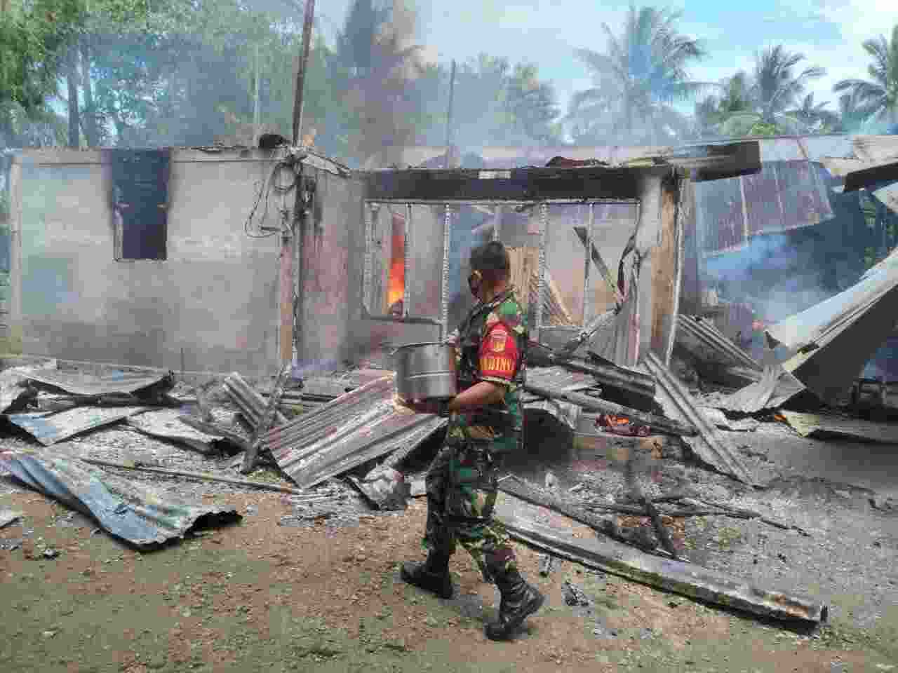 Selanjutnya, Babinsa berbadan tegap tersebut bersama warga sekitar berusaha memadamkan api yang semakin liar melahap setiap sisi bangunan rumah, beruntung satu unit mobil petugas Damkar Minsel segera datang sehingga api berhasil dipadamkan.