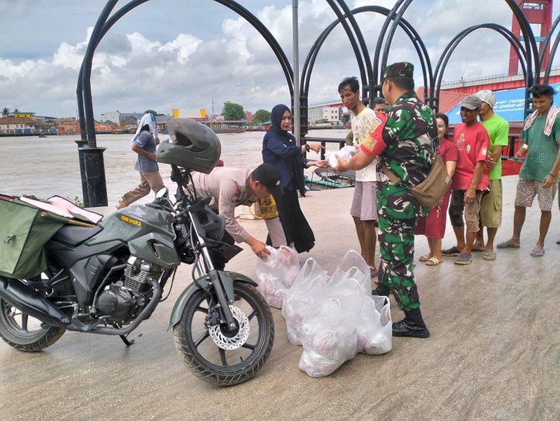 Nasi bungkus, dibagikan kepada kepada warga yang bekerja sebagai kuli panggul, padagang asongan dan tukang becak yang berada disekitaran Pasar 16 Ilir.