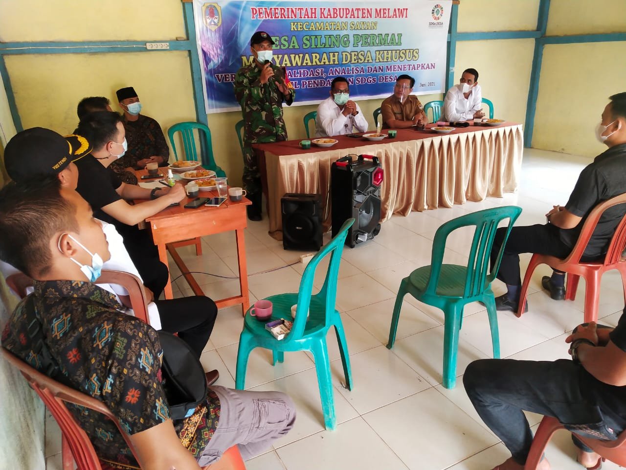 NASIONALXPOS.CO.ID, MELAWI (KALBAR) – Dalam rangka menjalin sinergitas dengan pemerintah desa setempat, Babinsa Koramil 1205-14/Sayan, Sertu Mulyadi menghadiri kegiatan Musyawarah bersama penetapan data berbasis SDGs (Sustainable Development Goals) tahun 2021 yang dilaksanakan di Aula Desa Siling Permai, Kamis (17/06/2021).