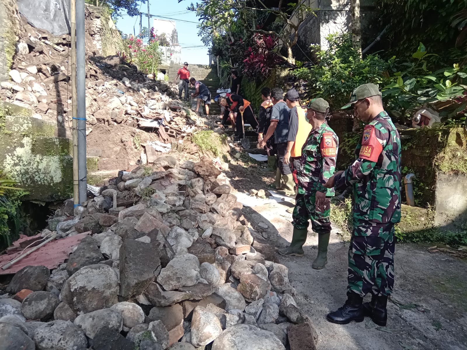 Babinsa Kodim 1619/Tabanan Bersama Instansi Terkait Bersihkan Sisa Material Longsor