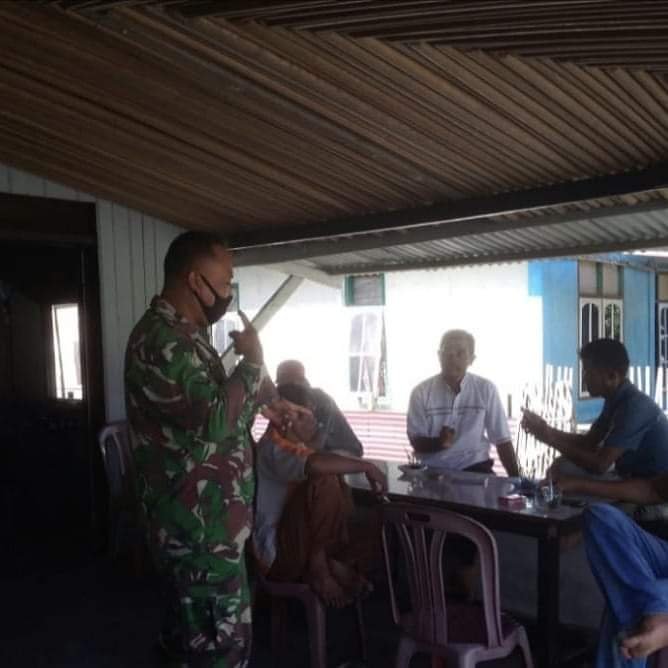 NASIONALXPOS.CO.ID, SIMEULUE ACEH – Sesuai dengan Instruksi pemerintah Daerah, TNI mendukung dan mengawasi penerapan protokol kesehatan dimasa adaptasi kebiasaan baru, Babinsa Koramil 03/Teupah Selatan, Kodim 0115/Simeulue, Serda Herni Purwoko