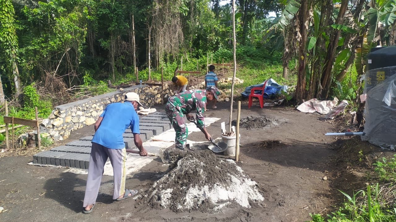 NASIONALXPOS.CO.ID,HALTENG- Dalam rangka menciptakan sinergitas TNI bersama rakyat, Babinsa Koramil 1512-01/Weda Serda G. Worabay melaksanakan karya bakti membantu pembuatan fondasi rumah milik Ferdy Kakaha warga binaannya yang berlokasi di Desa Sawai Itepo, Kecamatan Weda Tengah, Kabupaten Halmahera Tengah (Halteng) Maluku Utara (Malut) Kamis, (02/02/2023).
