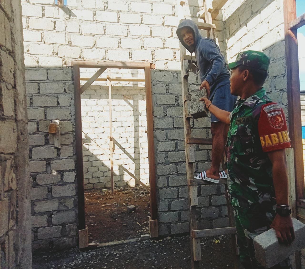 Babinsa Koramil 1512-01/Weda Turun Gunung Bantu Warga Binaan Bangun Rumah