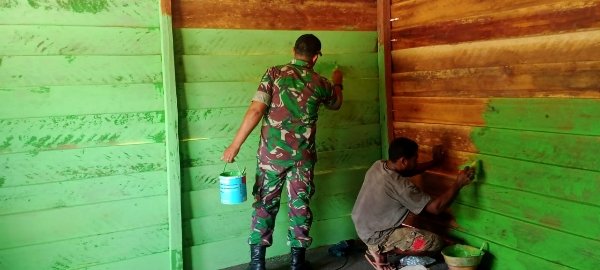 NASIONALXPOS.CO.ID,HALTENG – Dalam rangka mendukung usaha kecil masyarakat didesa binaanya. Babinsa Koramil 1512-02/Patani Sertu Bakri Seri turut serta membantu mengecat Kios (Tempat Penjualan) Milik Achmad, salah satu warga Desa Tepeleo, Kecamatan Patani Utara, Kabupaten Halmahera Tengah Maluku Utara. Senin (14/11/2022).