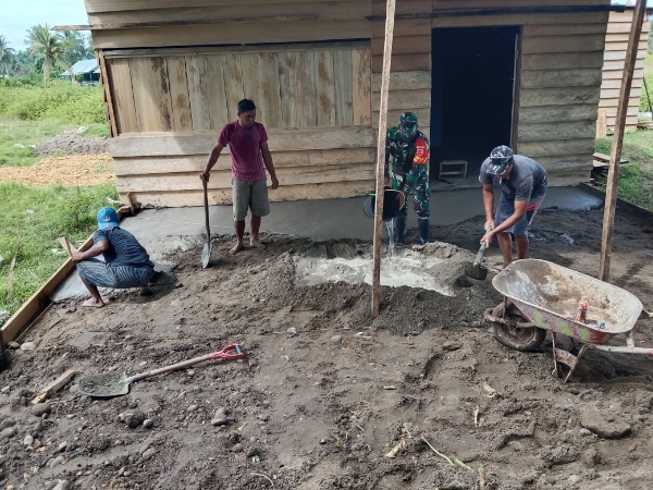 NASIONALXPOS.CO.ID,HALTENG – Babinsa Koramil 1512-03/Gebe Kodim 1512/Gebe Kabupaten Halmahera Tengah, melaksanakan kegiatan Karya Bhakti membangun rumah layak huni di wilayah binaannya Desa Kacepi Kecamatan Pulau Gebe Kabupaten Halmahera Tengah Provinsi Maluku Utara. Senin (14/11/2022).