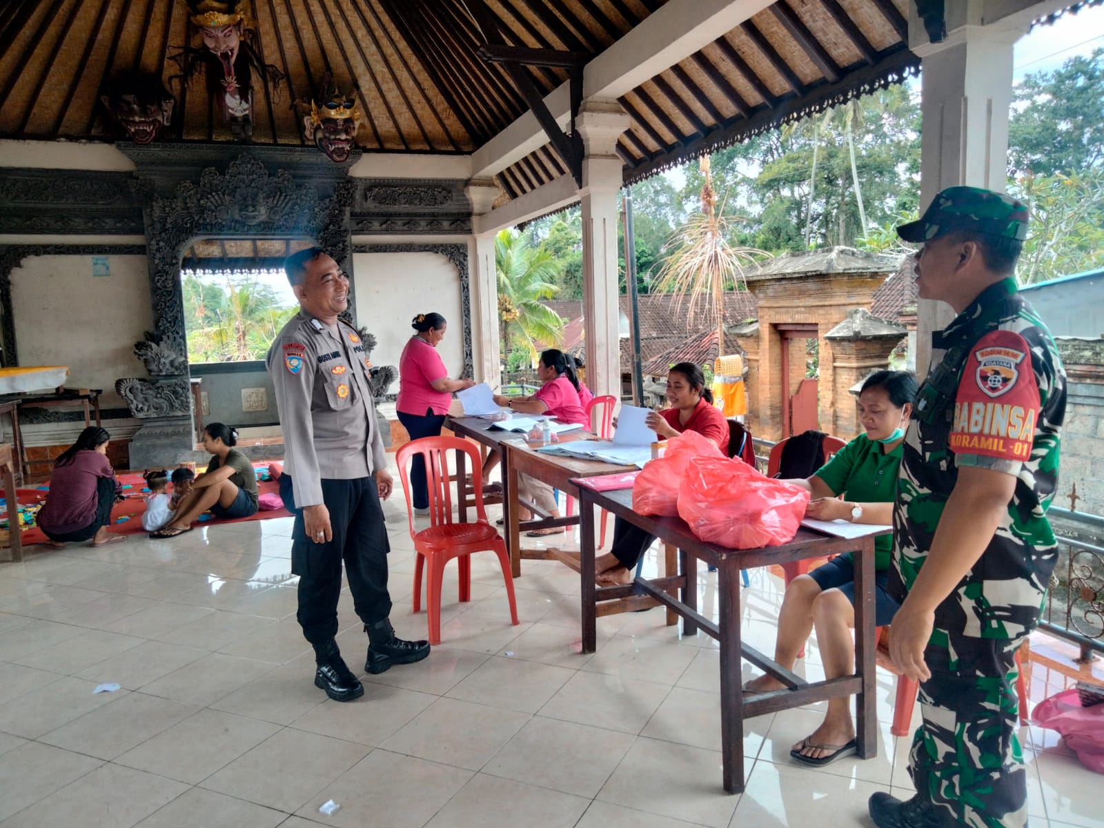 Dalam pelaksanaan kegiatan Posyandu yang dilaksanakan di Balai Banjar Adat Benawah Kangin, Desa Peta, Babinsa Desa Petak, Koramil 1616-01/Gianyar Serda. I Wayan Sudiasta mendampingi pelaksanaannya bersama Bhabinkamtibmas Desa. Rabu, (18/1/2023).