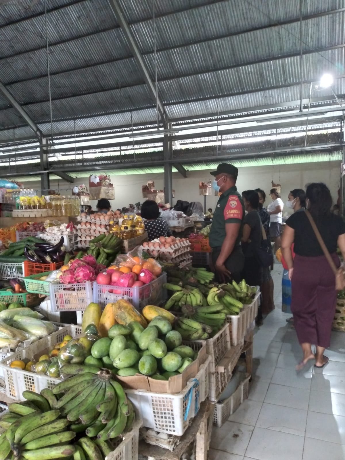 Dalam kesempatan itu Babinsa Koramil 1616-04/Blahbatuh Desa Bedulu, Serka Wayan Putra, mendatangi pasar tradisional untuk memberikan edukasi dan himbauan kepada para pengunjung dan penjual agar tetap mematuhi protokol kesehatan dalam setiap kegiatan dan selalu memakai masker, mencuci tangan dan menjaga jarak agar dapat memutus penyebaran covid-19.