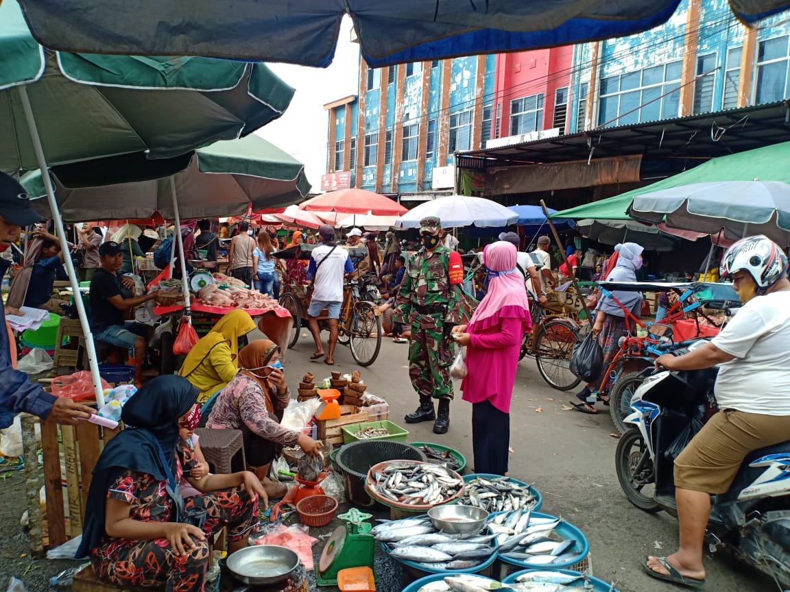 Dalam kegiatan tersebut, Babinsa Koramil 418-02/Pakjo memberikan himbauan kepada para pengunjung dan pedagang Pasar Pagi Macan Lindungan agar selalu mematuhi serta melaksanakan Prokes, untuk menghindari penyebaran Covid-19.