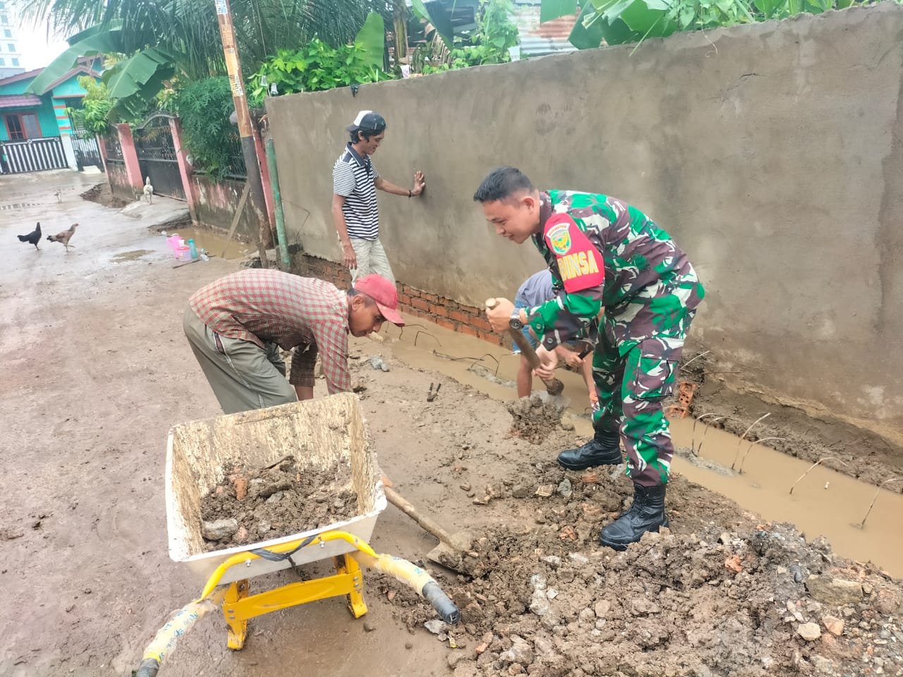 Danramil 418-02/Pakjo Kapten Arm Zainal Arifin, melalui Serda Sofiyan mengatakan, selaku aparatur kewilayahan sudah menjadi kewajiban kita untuk hadir di tengah-tengah warga guna membantu kesulitannya, seperti yang kita lakukan saat ini membantu warga memperbaiki saluran pembuangan air.