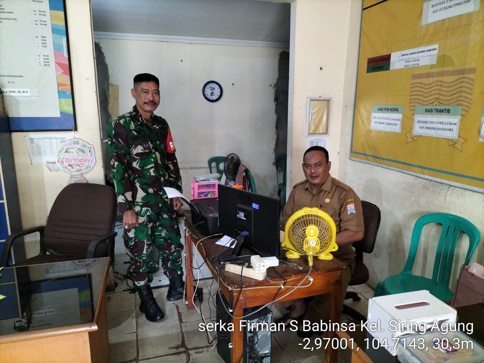 NASIONALXPOS.CO.ID, PALEMBANG – Babinsa Kelurahan Siring Agung Koramil 418-02/Pakjo Serka Firman, melaksanakan Komsos dengan Staf Kelurahan Siring Agung bapak Wanda, Kamis (30/2/2023).