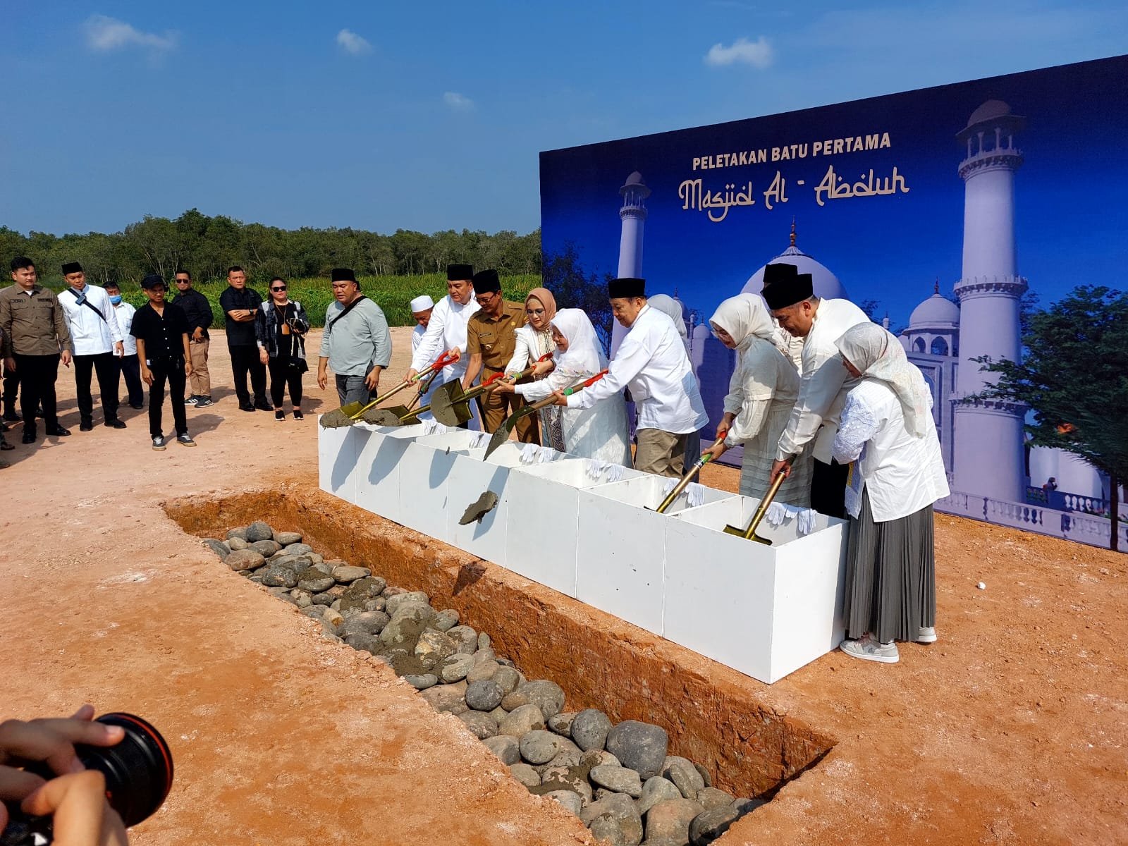 Acara Peletakan Batu Pertama ini, dialksanakan di halaman Masjid Al-Abduh Jalan Sunarna RT 16 RW 03 Kelurahan Sukamulya Kecamatan Sematang Borang Kota Palembang.