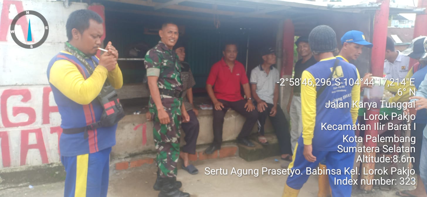Monitoring kegiatan tersebut, dilakukan Sertu Agung bersama Ketua RT 21 Abdullah, di Jalan Karya Tunggal RT 21 RW 13 Kelurahan Lorok Pakjo Kecamatan llir Barat 1 Kota Palembang.