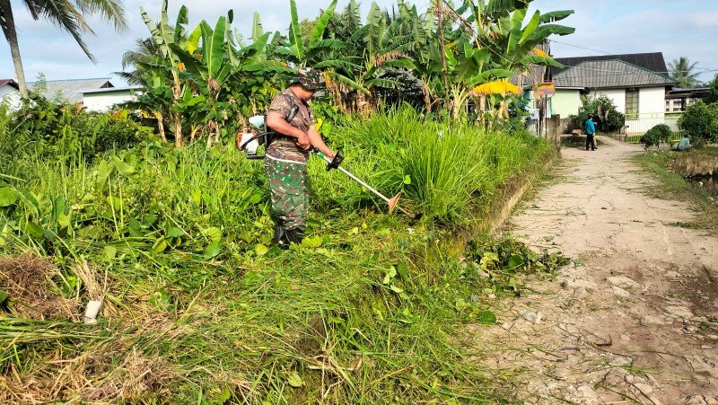 “Tujuan dari kegiatan ini tiada lain untuk menciptakan lingkungan yang bersih, asri dan sehat, serta untuk mencegah terjadinya banjir,” kata Peltu Tri Yuliarto, didampingi Sertu Juri Enjung. (Herry Eddy)
