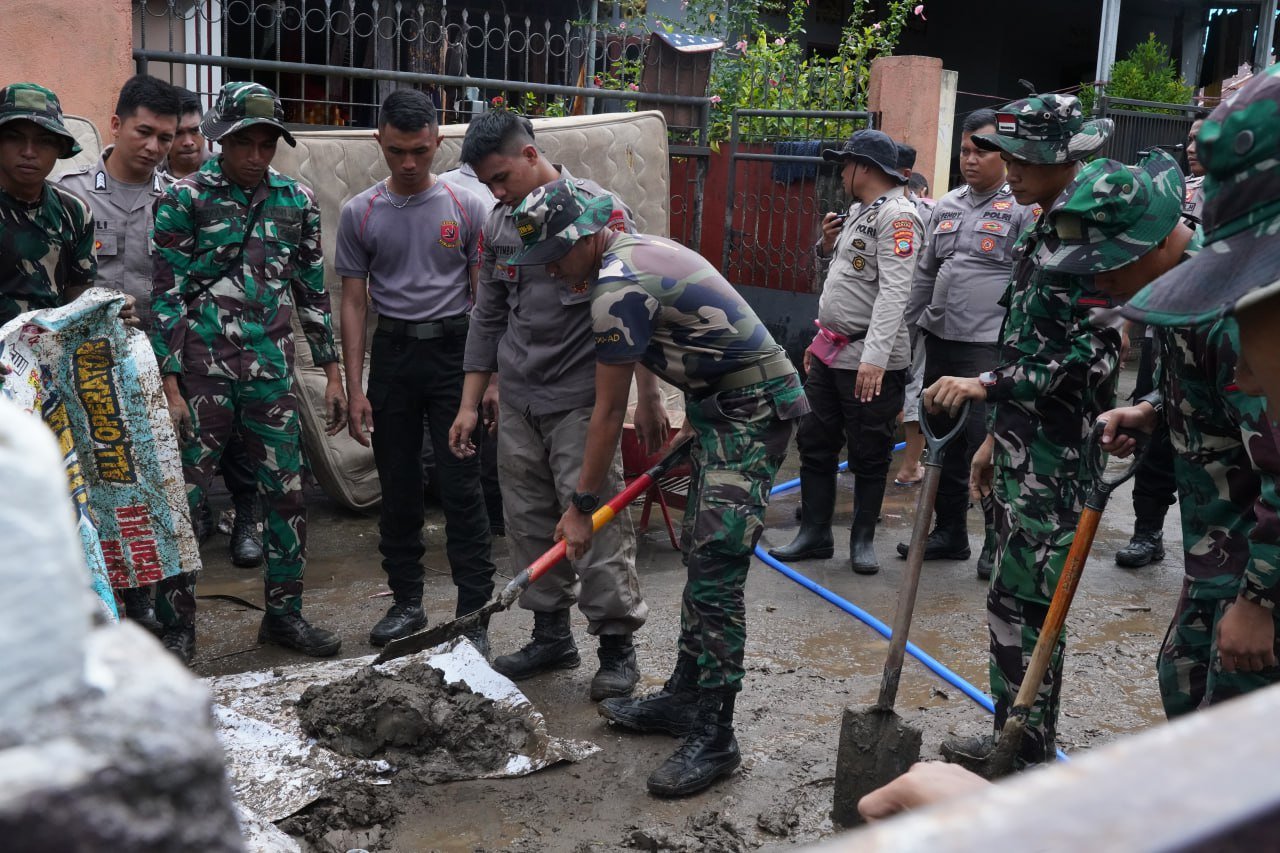 Kegiatan kerja bakti yang dilaksanakan oleh satuan Yonif Raider 712/Wiratama, Yonzipur 19/YKN serta satuan Teritorial yaitu Kodim 1309/Manado beserta Polri Polda Sulut kurang lebih 300 orang diturunkan untuk membantu dan meringankan beban masyarakat yang terkena dampak pasca bencana banjir yang melanda beberapa hari yang lalu.