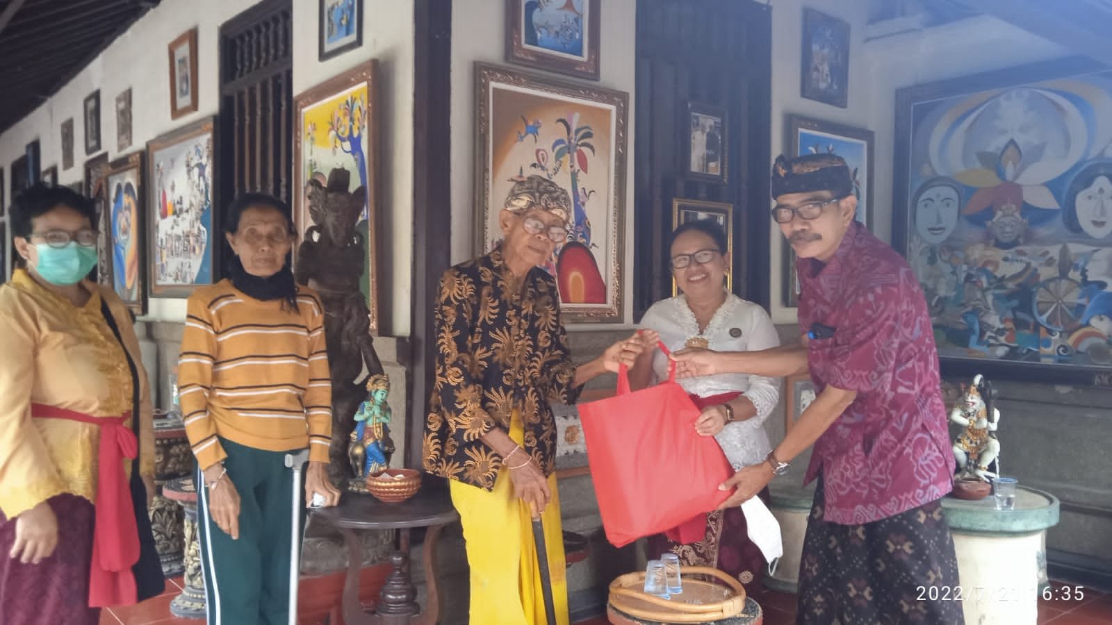 NASIONALXPOS.CO.ID, TABANAN – Sehubungan dengan ditetapkannya hari Tumpek Krulut sebagai Hari Tresna Asih oleh pemerintah Provinsi Bali. Yang bulan ini dirayakan oleh umat Hindu pada hari Sabtu tanggal 23 Juli 2022. Balai Besar BPOM Denpasar menindaklanjuti hal ini dengan berbagi kasih kepada salah seorang seniman lukis I Gusti Nyoman Nodia, 86 th, yang bermukim di Kawasan wisata Tanah Lot.