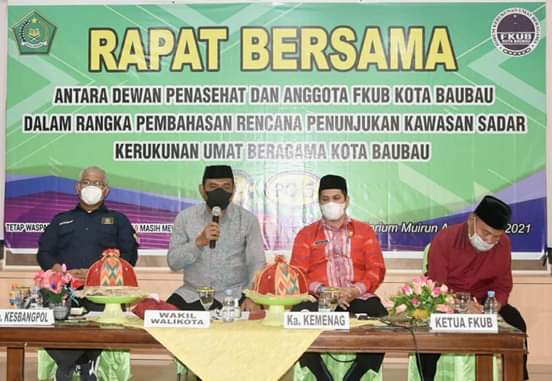 Wakil Wali Kota Baubau La Ode Ahmad Monianse selaku ketua Dewan Penasehat FKUB saat ditemui di kediamannya, Jumat (23/7/2021) menuturkan, rapat tersebut bertujuan untuk memantapkan rencana Kementerian Agama bersama Pemerintah Kota Baubau untuk membangun Kas KUB.